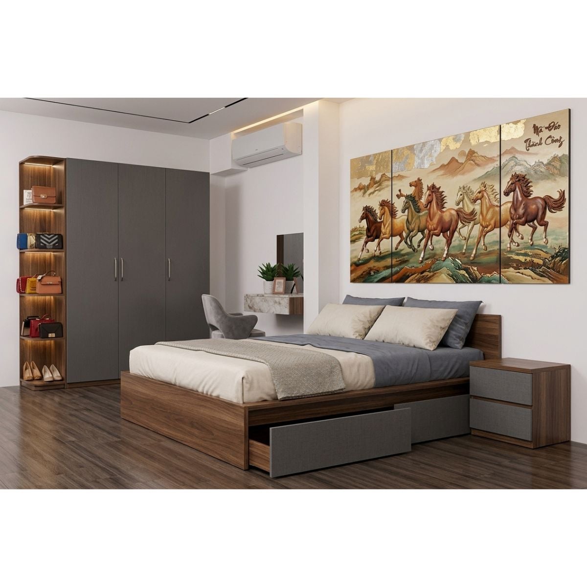 + Giường ngủ 1,6x2m có 2 hộc kéo