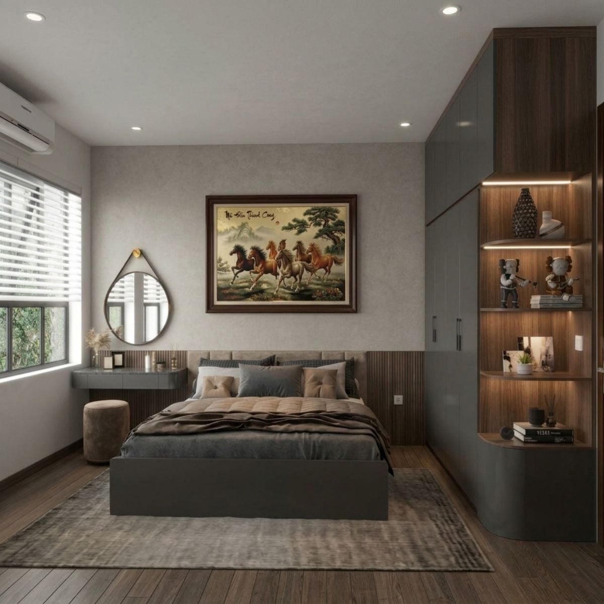 Thay vì mua từng món lẻ tẻ, nhiều gia đình đã quyết định chọn combo nội thất phòng ngủ nhằm tiết kiệm chi phí và tạo ra sự đồng bộ, nhất quán trong tổng thể phòng ngủ. Sau đây là Bộ Nội Thất Phòng Ngủ Màu Xám Phối Vân Gỗ Hiện Đại 1275 Nội thất Viva muốn gợi ý cho các bạn.