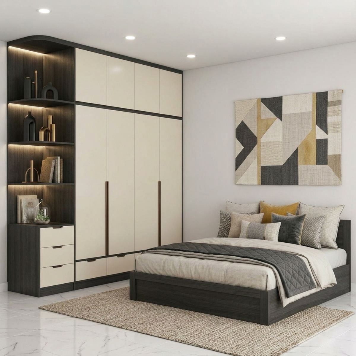 Bộ Giường Tủ Phòng Ngủ với phong cách kết hợp màu”tông xuyết tông” giúp dễ dàng sở hữu không gian theo một thể thống nhất, đồng bộ, chỉn chu. Thiết kế combo theo lối bày trí liên kết và liền kề. Các sản phẩm nội thất theo Combo Phòng Ngủ này sẽ nhất quán, đồng bộ về màu sắc, thống nhất về mẫu mã, kiểu dáng, họa tiết,... Hướng đến sự tối giản nhất định, mang đến sự hiện đại, tinh tế, sang trọng cho căn phòng.