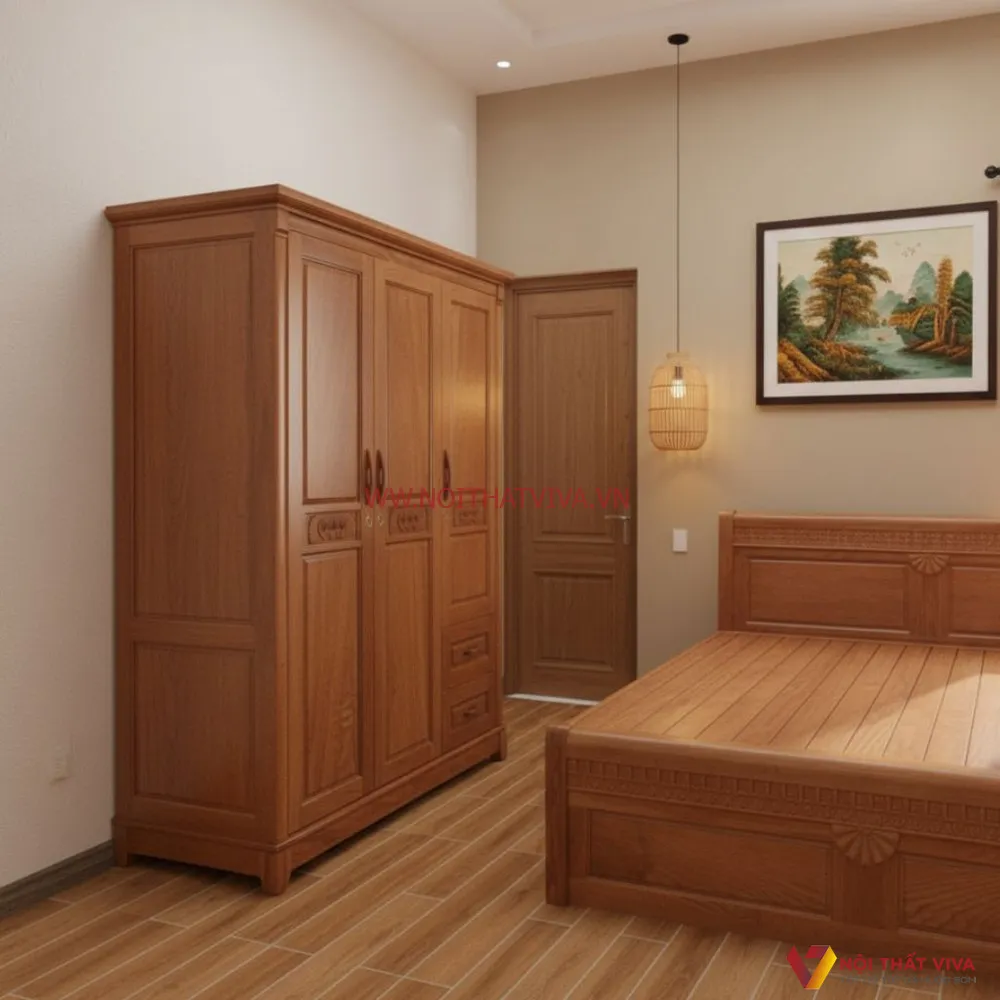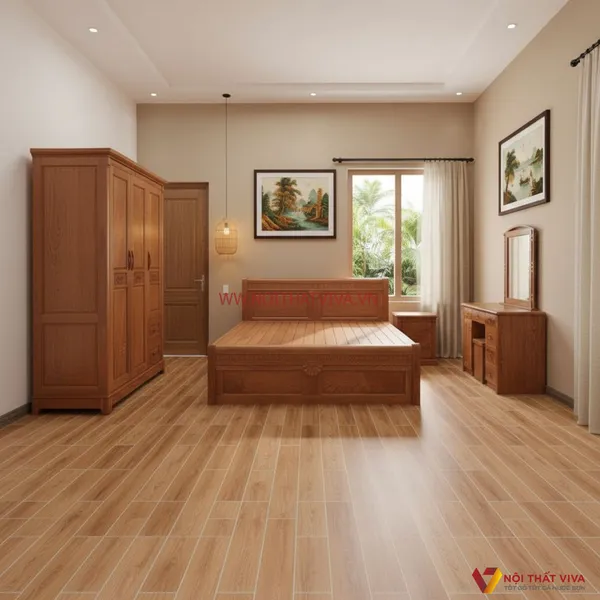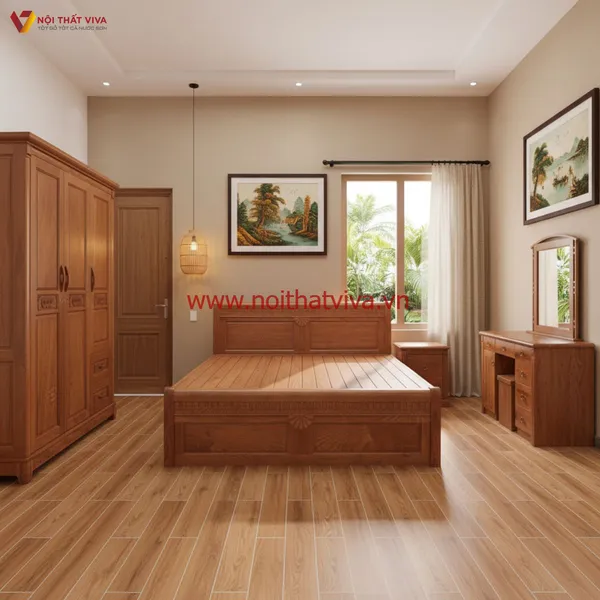 Bộ Combo Phòng Ngủ Gỗ Sồi Tự Nhiên Màu Cánh Gián Đẹp Giá Rẻ