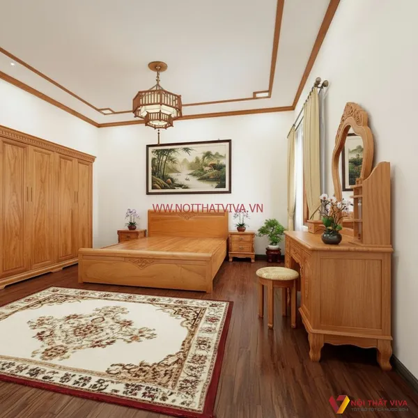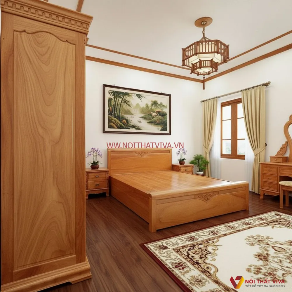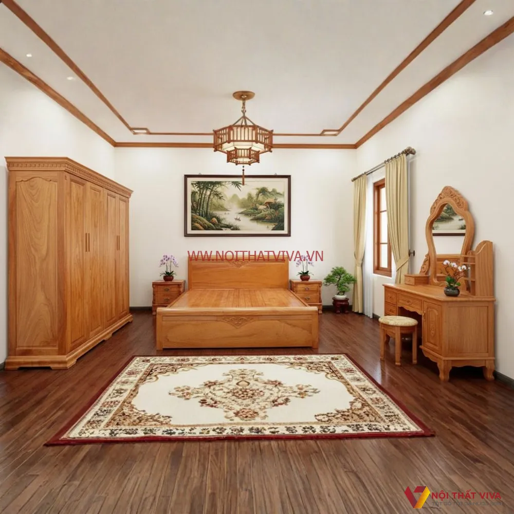 Combo Giường Tủ Bàn Trang Điểm Gỗ Gõ Đỏ Sang Trọng