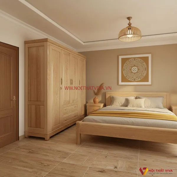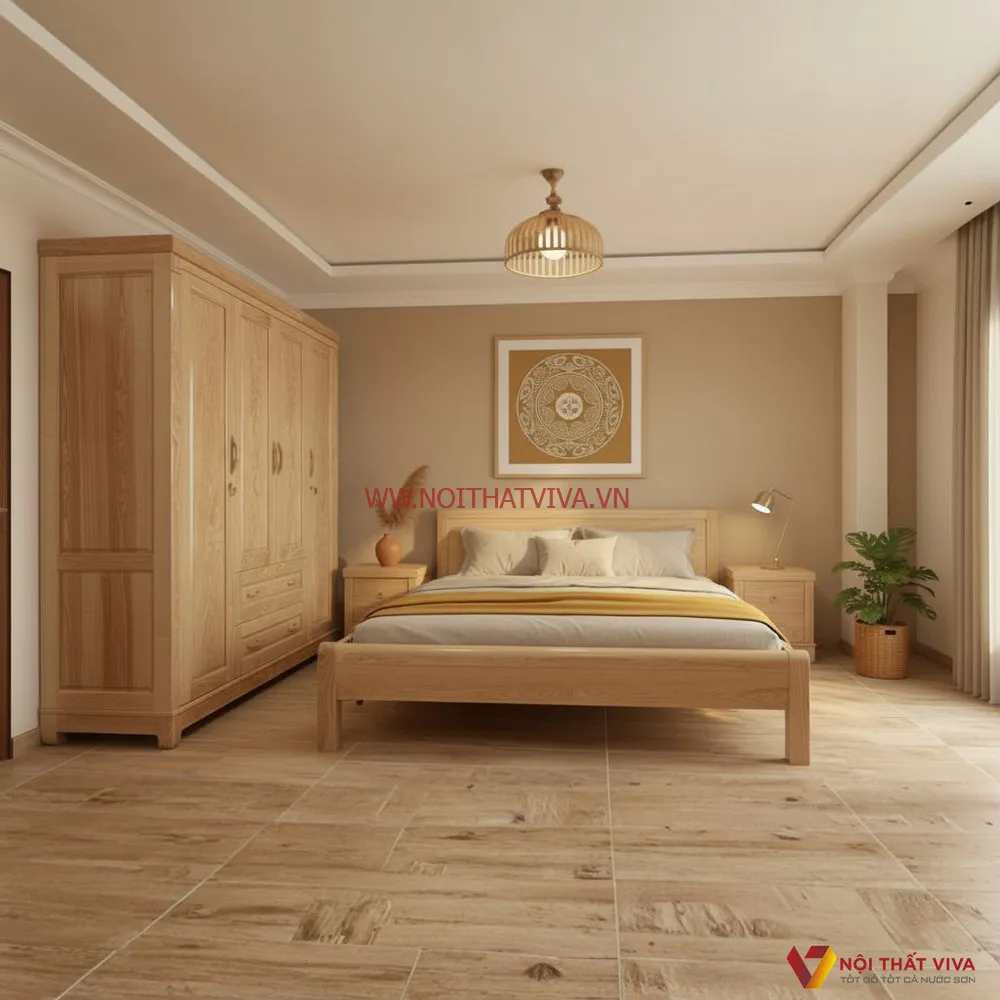 Combo Tủ Quần Áo Và Giường Gỗ Tự Nhiên Phong Cách Sang Trọng