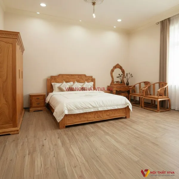 Combo Giường Tủ Phòng Cưới Gỗ Gõ Đỏ Cổ Điển Chất Lượng