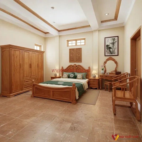 Combo Nội Thất Phòng Ngủ Tân Cổ Điển Gỗ Gõ Đỏ Cao Cấp