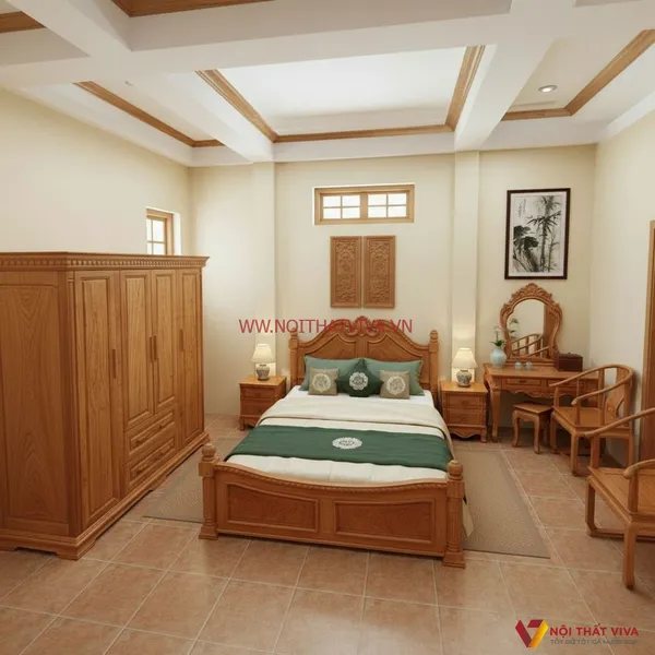 Kích thước: Giường 1m6/1m8 x 2m (Dài x Rộng ) / Tủ: 194 x 213 x 60cm (Rộng x Cao x Sâu) / Bàn phấn: 130cm  (Rộng) / Tab: 41 x 41 x 54cm (Rộng x Sâu x Cao)