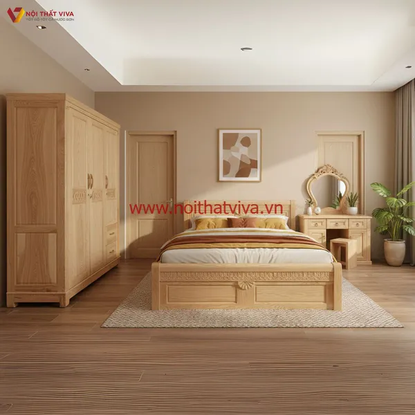 Combo Nội Thất Phòng Ngủ Gỗ Tự Nhiên Màu Xoan Đào Bền Đẹp Hiện Đại