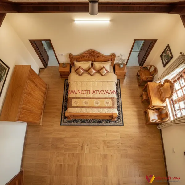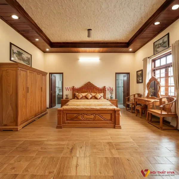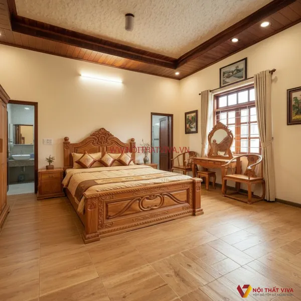 Combo Phòng Ngủ Tân Cổ Điển Gỗ Gõ Đỏ Chất Lượng Cao Cấp