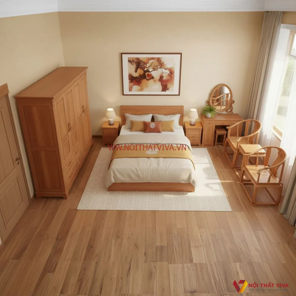 Combo Tủ Và Giường Ngủ Đẹp Chất Liệu Gỗ Đinh Hương Cao Cấp
