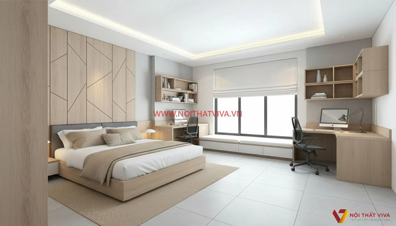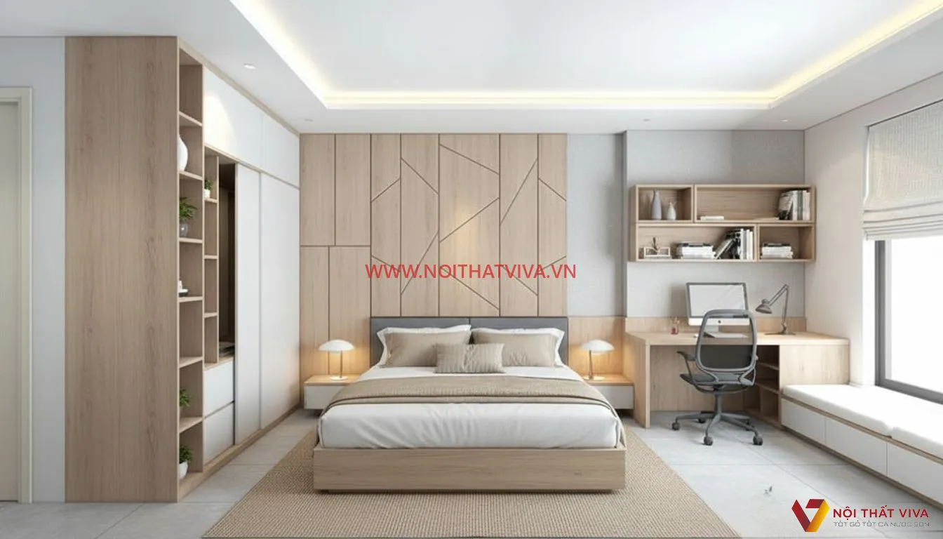 Bộ Giường Tủ Đẹp Kết Hợp Bàn Làm Việc Tiện Ích Giá Ưu Đãi