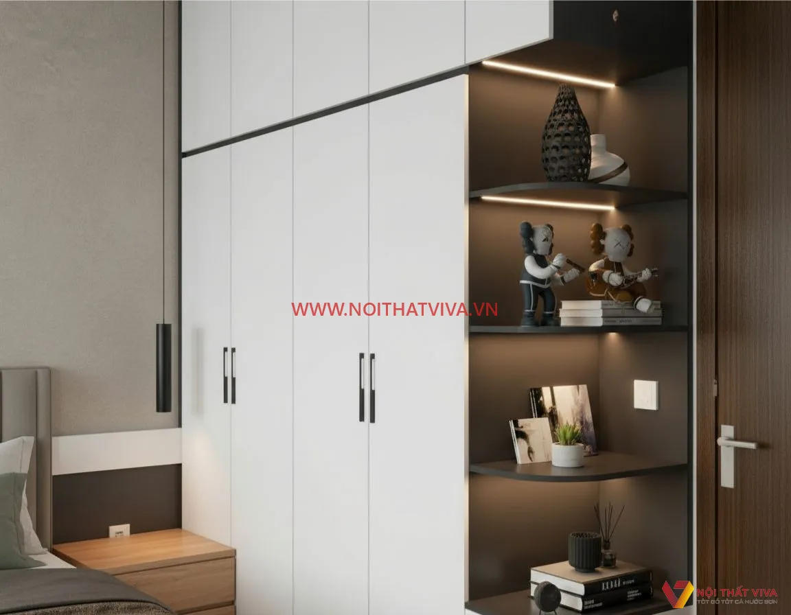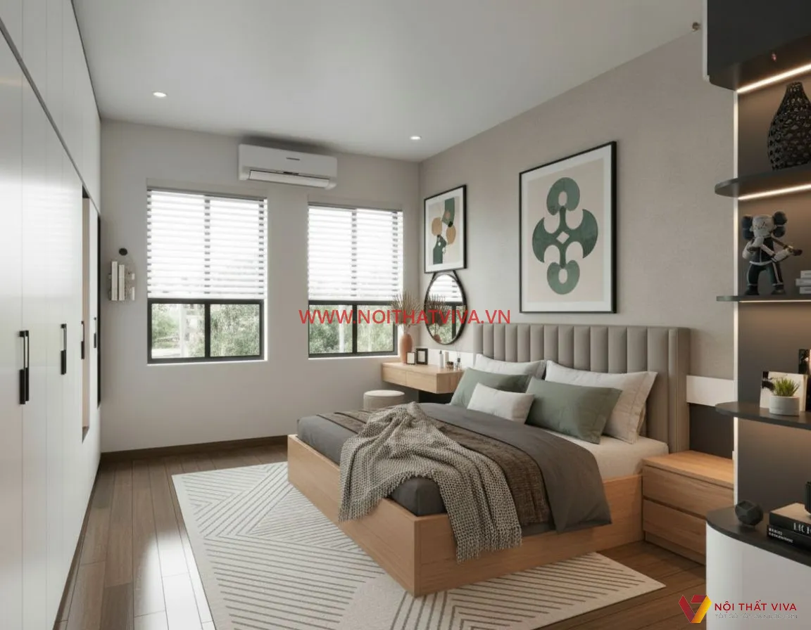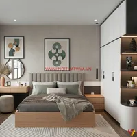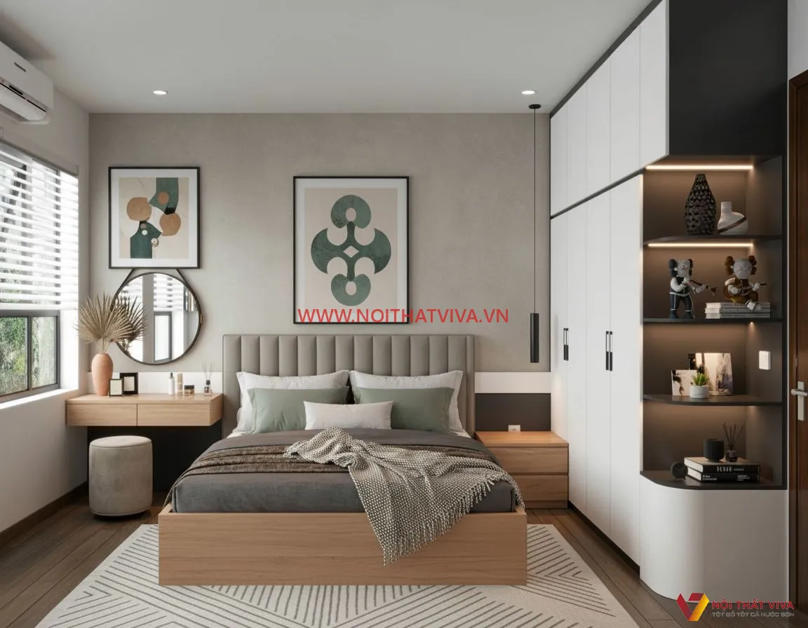 Combo Nội Thất Phòng Ngủ Đẹp Với Thiết Kế Tủ Cao Chạm Trần