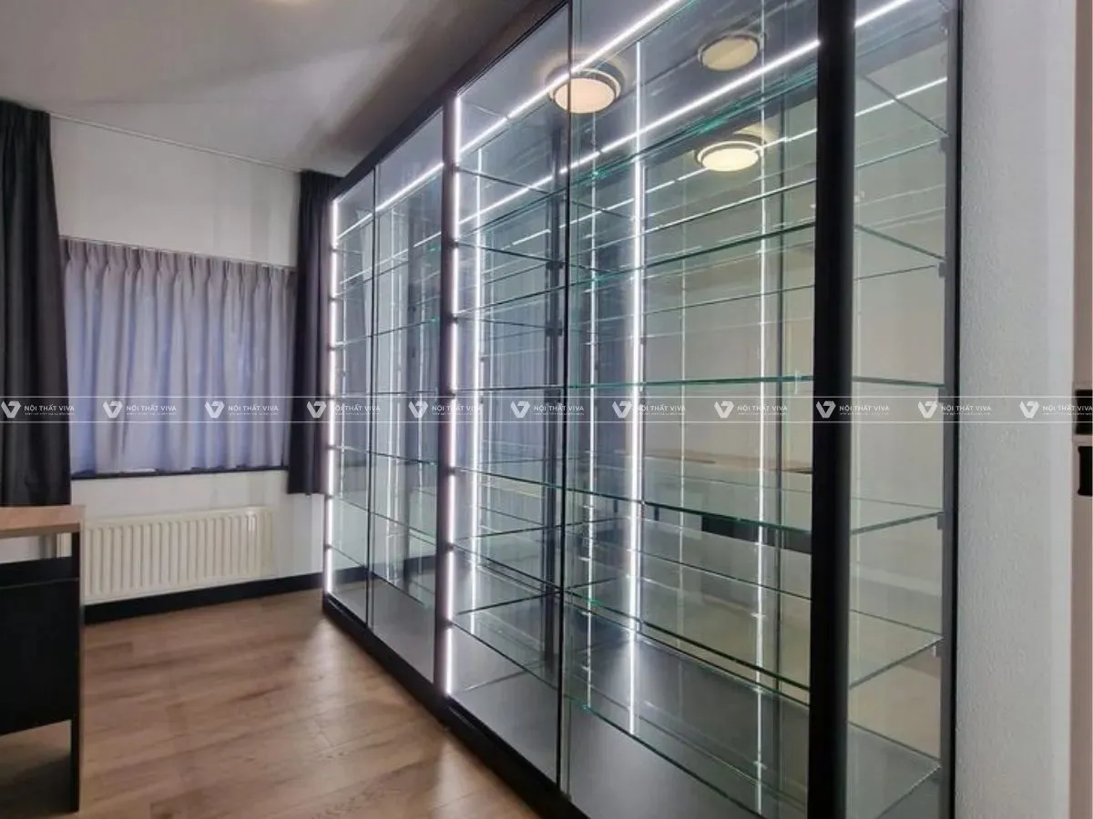 - Tủ trưng bày, tủ giày, tủ áo: kiểu dáng hiện đại, màu sắc sang trọng, kết hợp đèn LED tạo điểm nhấn.