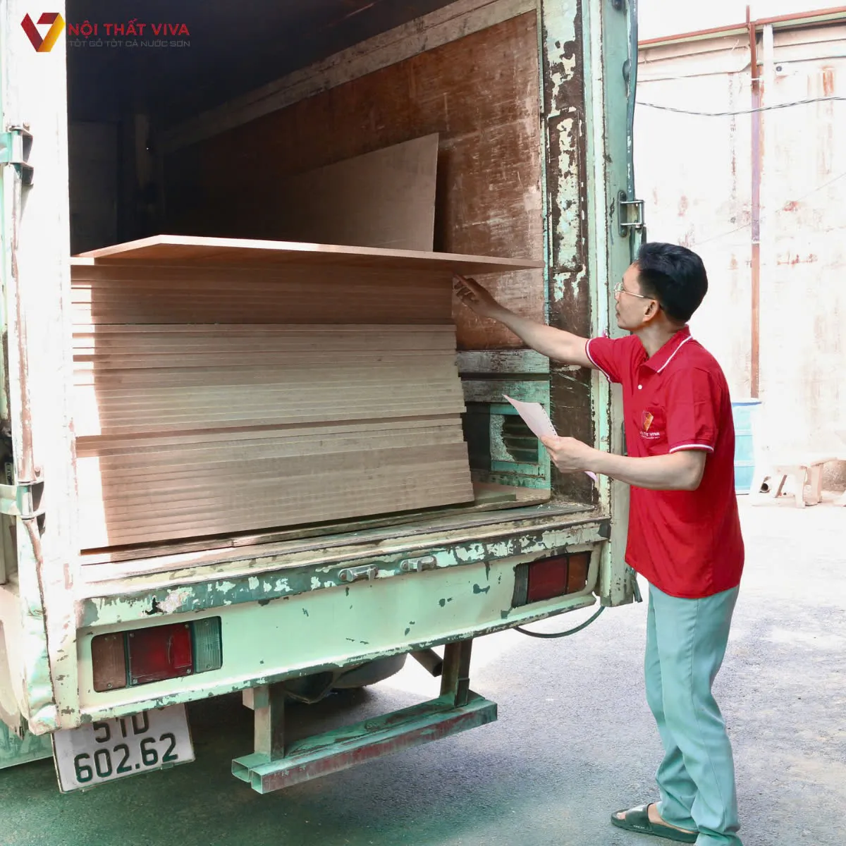 Bước 5: Xưởng sản xuất theo tiến độ thi công, kiểm tra theo tiêu chuẩn chất lượng Nội thất Viva, đóng gói.