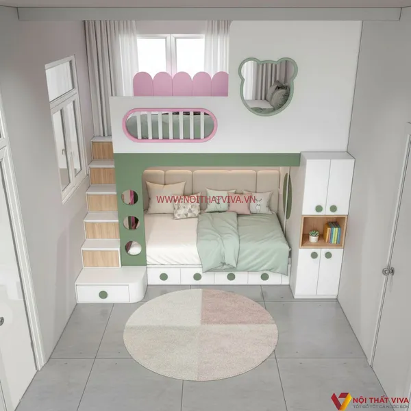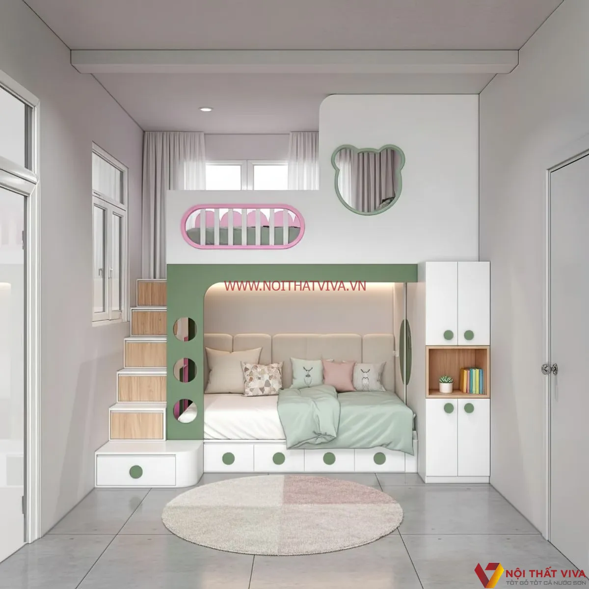 Giường Gỗ Thông Minh 2 Tầng Kết Cấu Bền Bỉ Giá Ưu Đãi