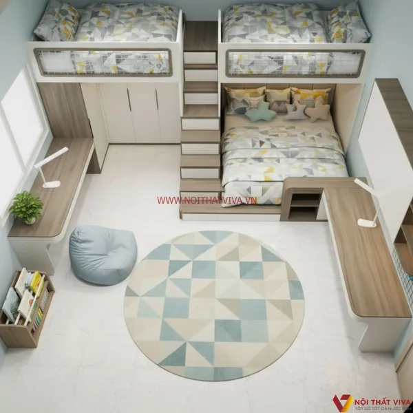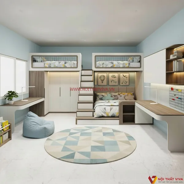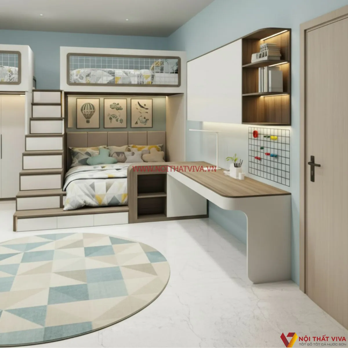 Giường Kết Hợp Bàn Học Và Tủ Áo Tiện Lợi Dành Cho Trẻ Em