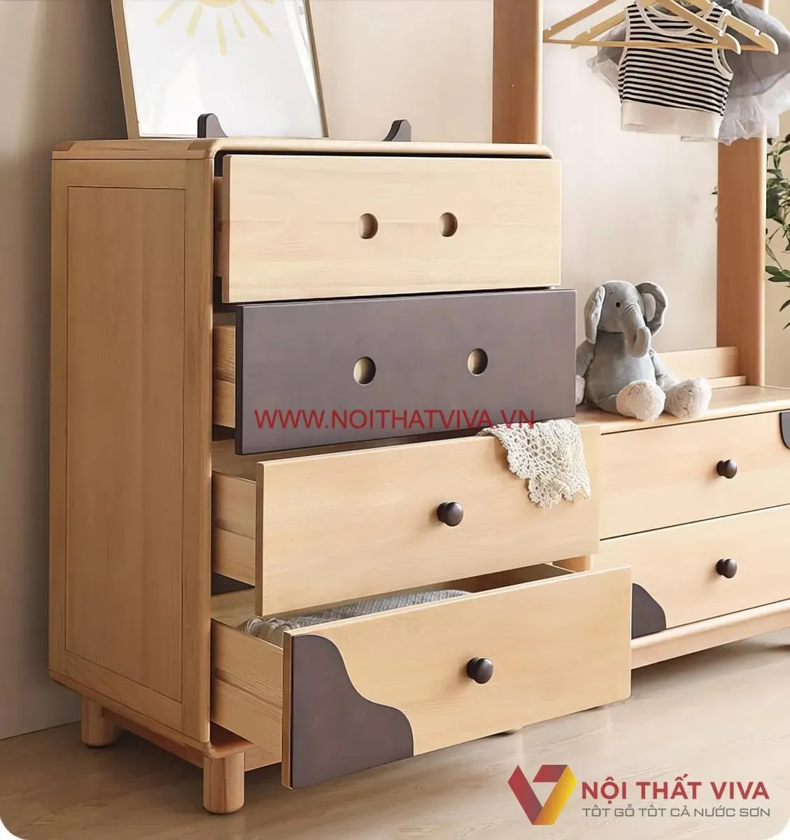Chọn tủ được làm từ chất liệu chắc chắn như gỗ sẽ giúp đảm bảo độ bền, thời gian sử dụng lâu và an toàn cho bé.