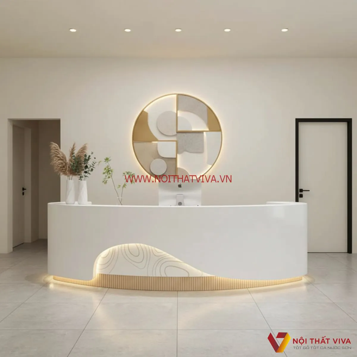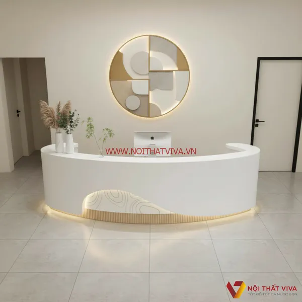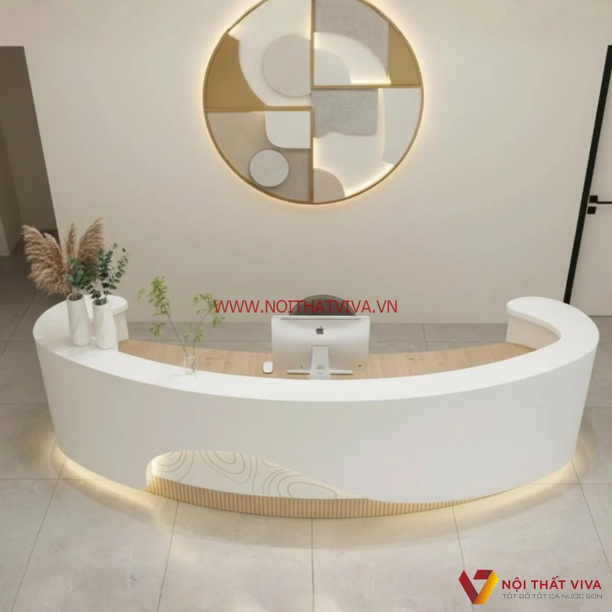 Bàn Lễ Tân Đẹp Thiết Kế Hình Vòng Cung Tinh Tế Chất Lượng Cao