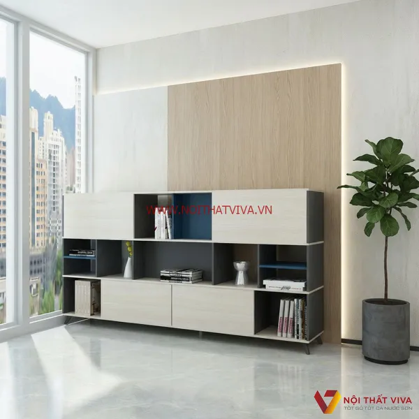 Tủ Tài Liệu Bằng Gỗ Công Nghiệp Cao Cấp Tông Màu Sáng Hiện Đại