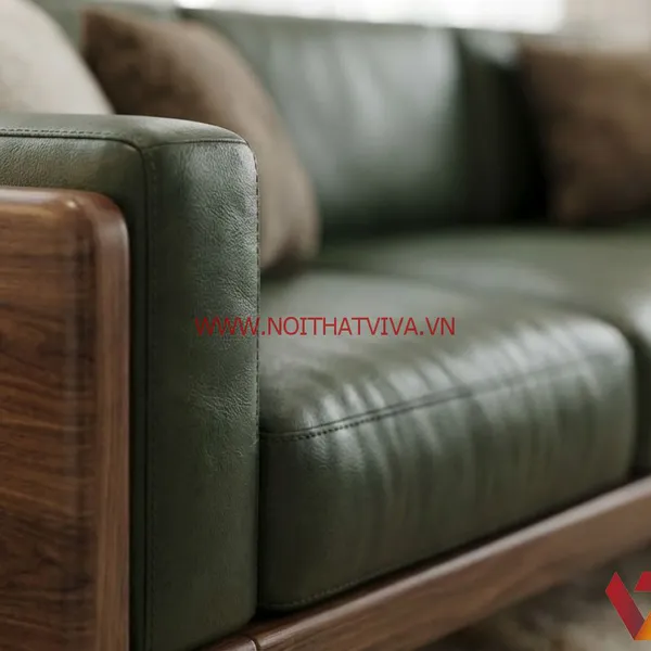Sofa Chữ L Gỗ Óc Chó Kết Cấu Chắc Chắn Phối Nệm Xanh Rêu Đẹp