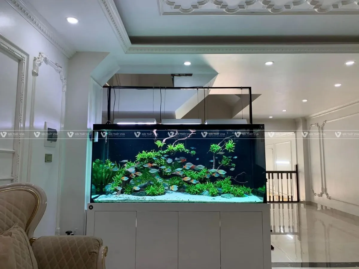 Tủ bể cá, tủ hồ cá thủy sinh trong nhà không chỉ giúp trang trí mà còn tăng tài vận trong nhà.