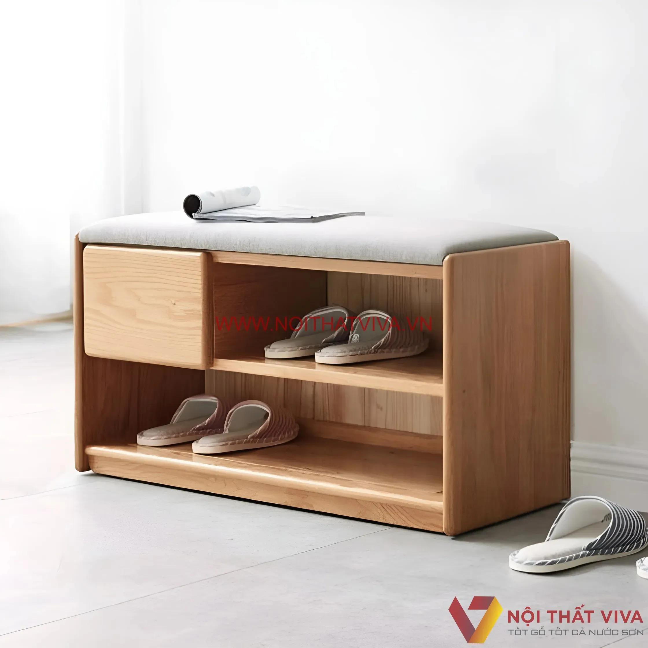 Tủ Giày Nhỏ Mini Kiêm Ghế Ngồi Gỗ Tự Nhiên Đẹp Hiện Đại