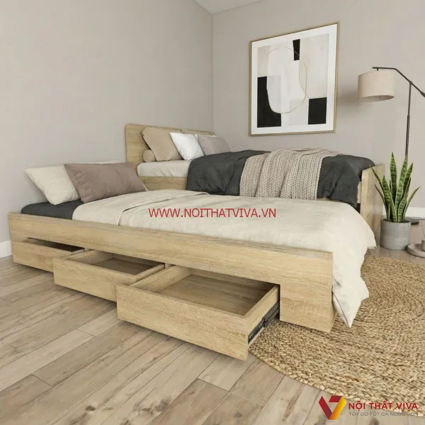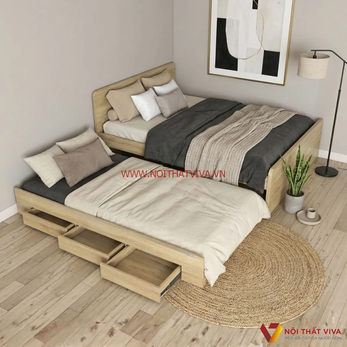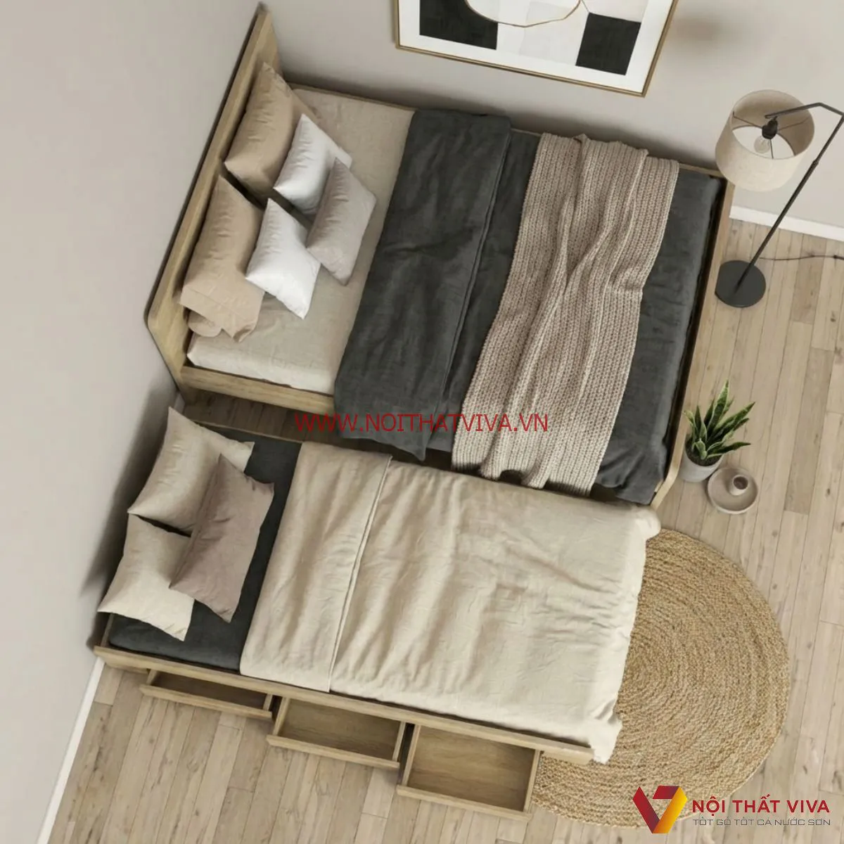 Giường Đôi 2 Tầng Tích Hợp Hộc Kéo Tiện Ích Chất Lượng Cao