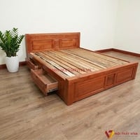 Giường Gỗ Sồi 1M8X2M Ngăn Kéo Màu Cánh Gián Giá Rẻ