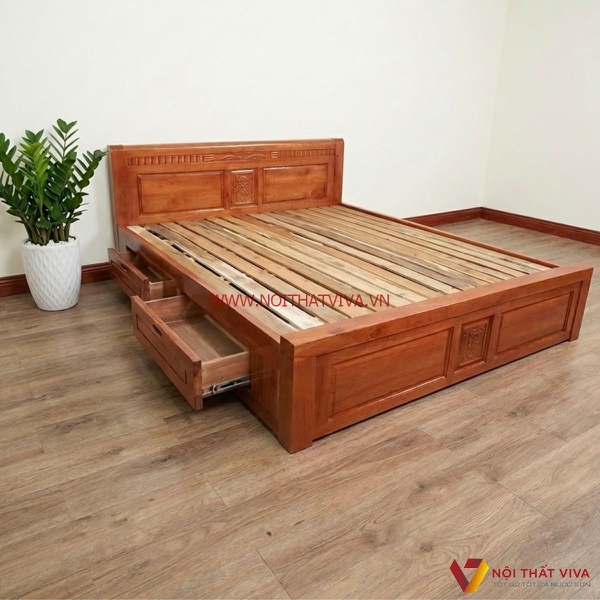 Mẫu giường gỗ sồi 1m8x2m Ngăn Kéo Màu Cánh Gián Giá Rẻ với thiết kế hộc kéo thông minh là lựa chọn mang đến phòng ngủ sự gọn gàng, tiện nghi. Sản phẩm có nhiều ưu điểm cạnh tranh về chất lượng, thiết kế và giá cả. Cùng Nội Thất Viva khám phá chi tiết về mẫu giường gỗ sồi 1m8x2m đang được ưa chuộng này.