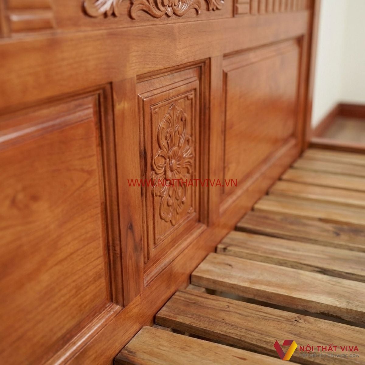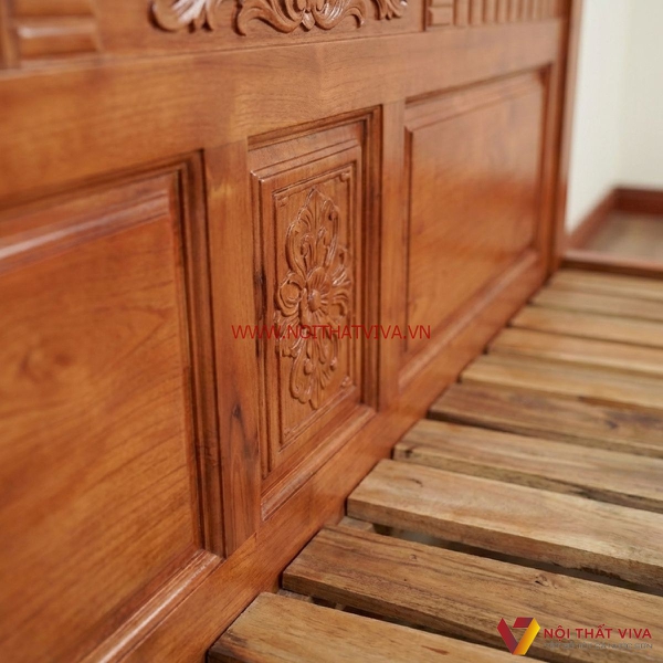 Kết cấu sản phẩm chắc chắn, khả năng chịu lực rất tốt, không gây tiếng động, chống mối mọt, cong vênh, nứt nẻ hiệu quả và đã được xử lý qua dây chuyền chống ẩm mốc. Dưới bộ vạt phản là một hệ thống nâng đỡ tuyệt vời với những thanh gỗ chắn ngang, các chi tiết được đóng công phu, kỹ lưỡng.