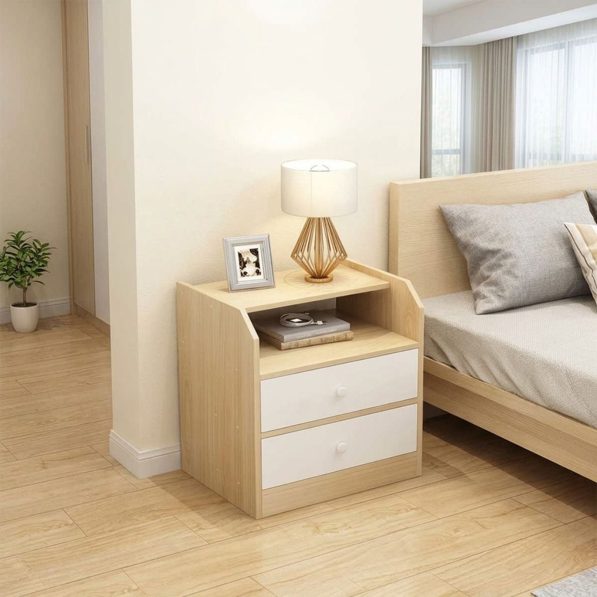 Mẫu Tủ Đầu Giường vuông vắn truyền thống tạo cảm giác vững chãi, chắc chắn. Lưu trữ đồ đạc rất tiện dụng với 2 ngăn kéo, đồng thời giúp trang trí văn phòng thêm đẹp và thu hút hơn. Thân tủ màu trắng nâu vừa hiện đại, vừa mang đến vẻ thanh lịch và thể hiện đẳng cấp cho không gian. Ngăn kéo trắng giúp tủ đầu giường nhìn sẽ không đơn điệu, tẻ nhạt. Dù bài trí trong không gian nào, cũng mang đến vẻ tươi mới.