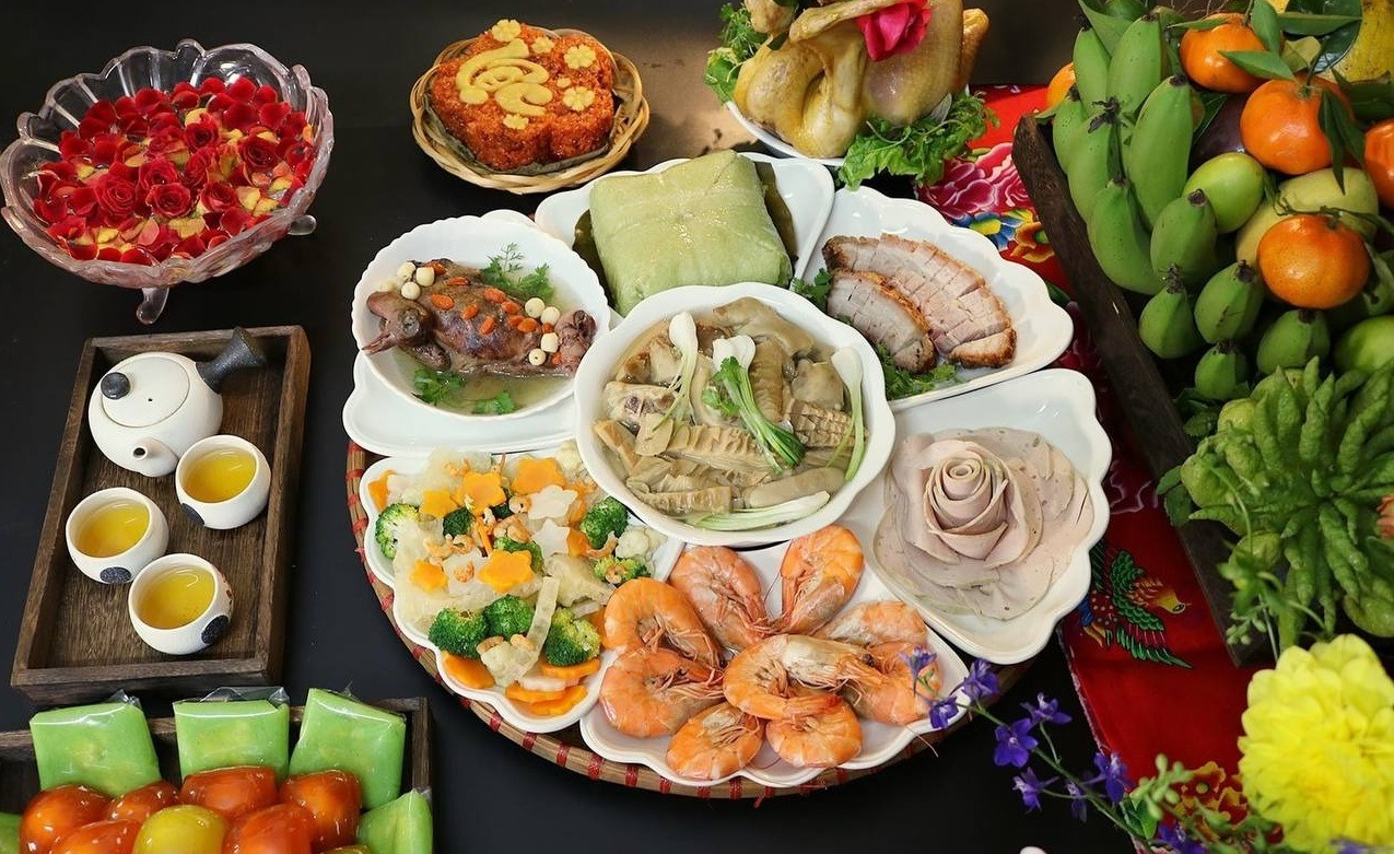 2.2. Cách trang trí tủ thờ ngày Tết với mâm cơm cúng ngày 30