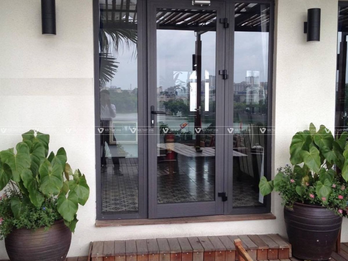Kết hợp cửa đi mở quay với vách kính cố định xung quanh. Thiết kế này là xu hướng được ưa chuộng trong kiến trúc hiện đại. Bởi tối đa ánh sáng tự nhiên, mở rộng không gian và tăng thêm độ sang trọng. Gia tăng giá trị thẩm mỹ, phù hợp với những công trình cao cấp.