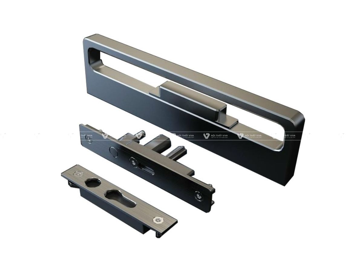 - Tay nắm: Tay nắm cửa làm từ hợp kim nhôm hoặc thép không gỉ, có sự đa dạng trong kiểu dáng.