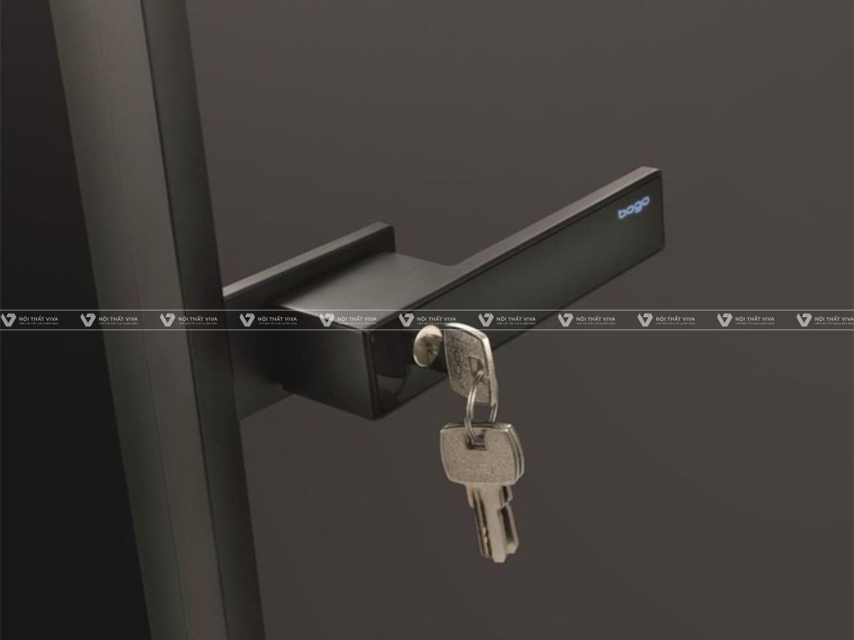 - Khóa: Khóa cửa được sử dụng là khóa tay gạt, khóa chốt, khóa điện tử,…