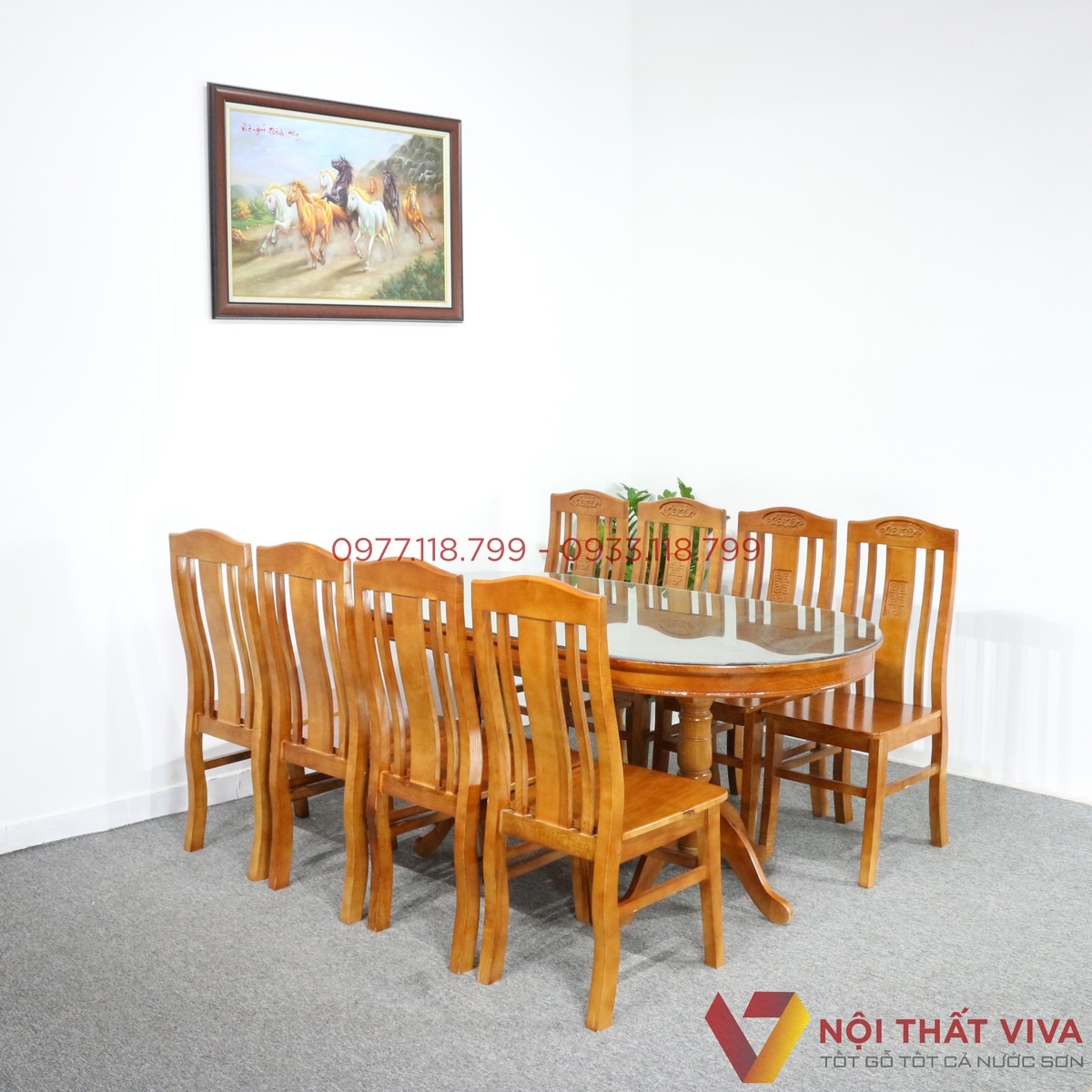 Bộ bàn ăn gỗ có sức chứa lớn, dùng để bày biện đa dạng các món ăn 1 – 2 mâm cỗ ngày tết. Là lựa chọn lý tưởng đối với những gia đình có đông thành viên, hay những dịp bạn bè ghé chơi.
