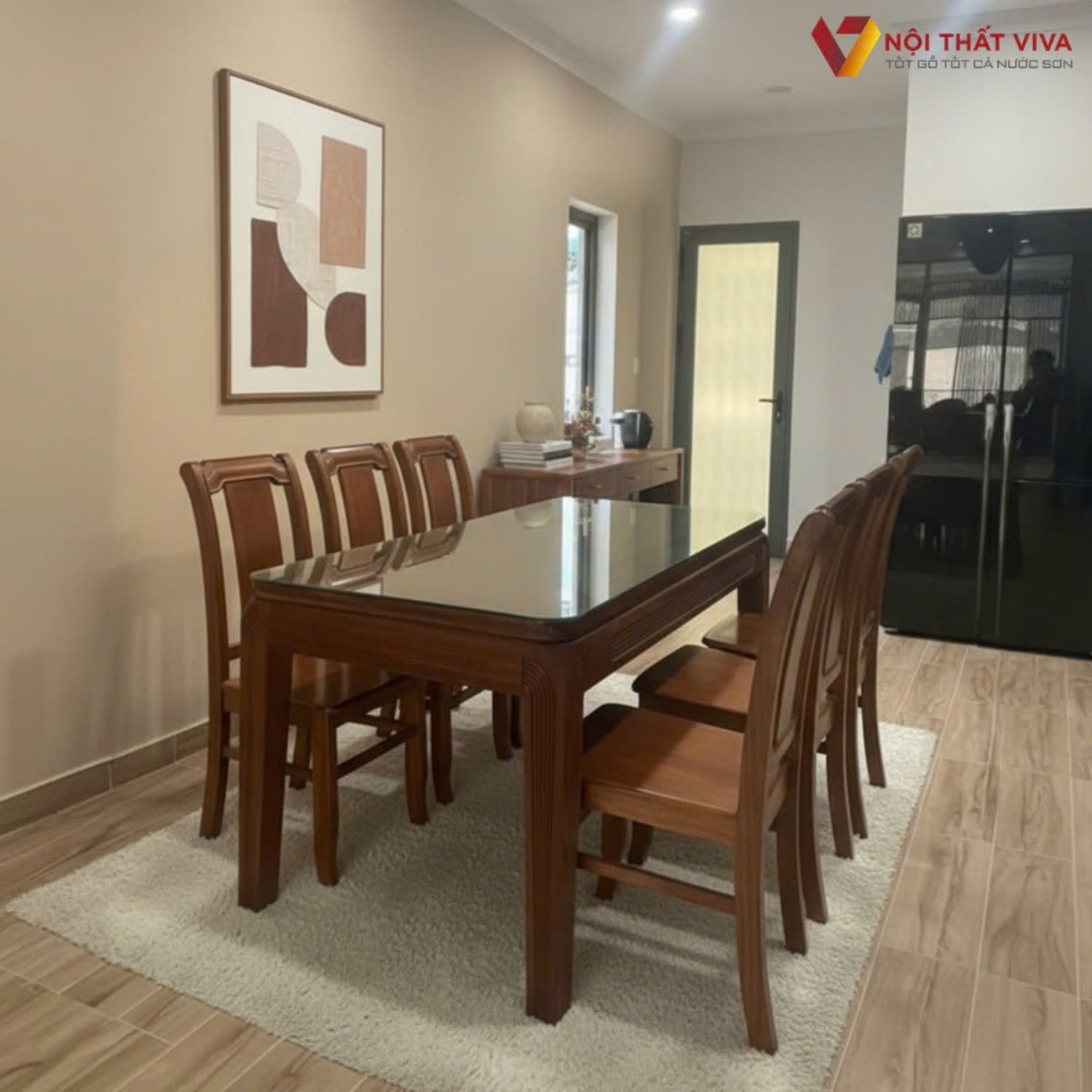 Phù hợp với gia đình 4–6 người và không gian phòng ăn vuông hoặc rộng.