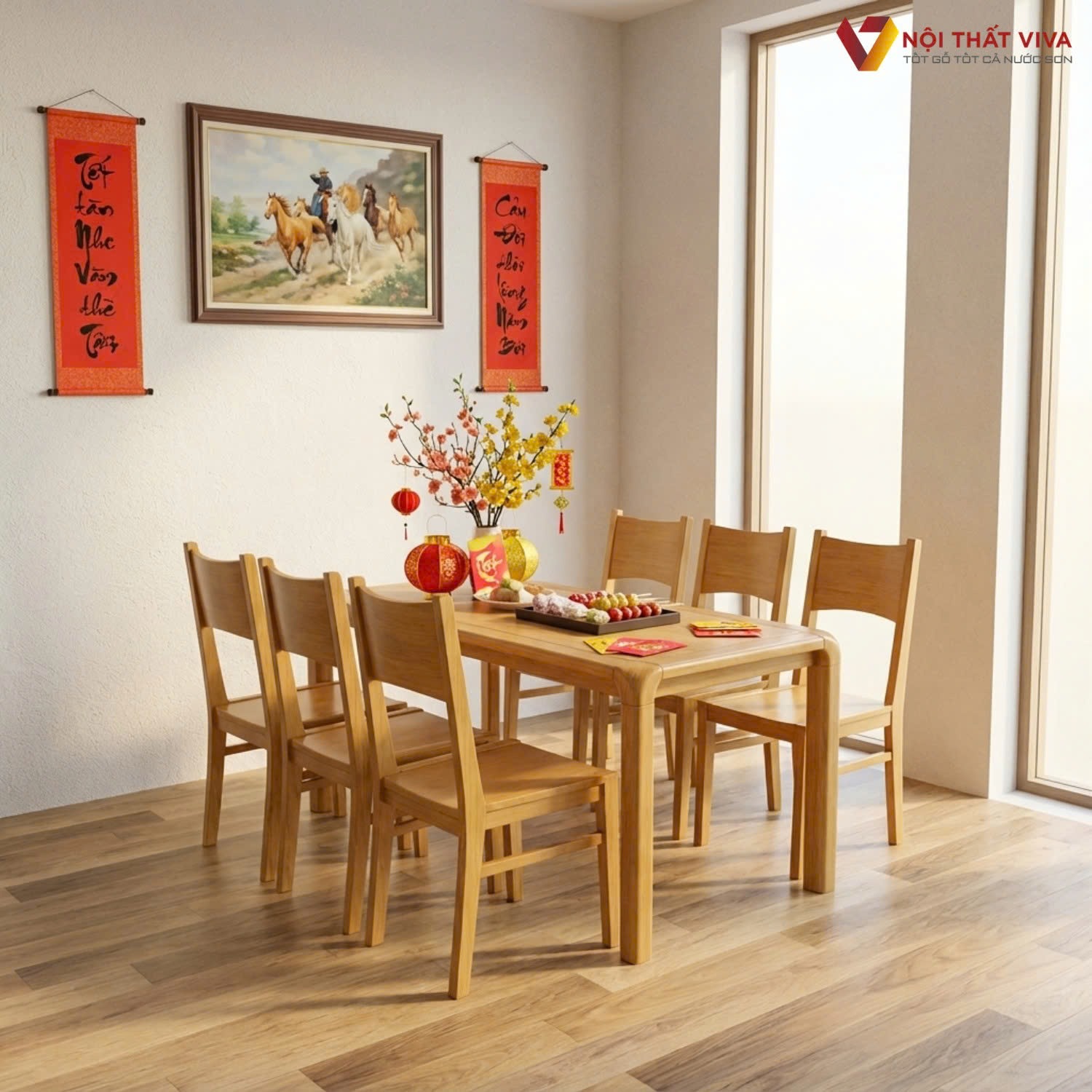 Tránh việc chỉ chọn theo cảm xúc “đón Tết” mà bỏ qua sinh hoạt hằng ngày. Bộ bàn ăn gỗ cần phù hợp cho cả bữa cơm gia đình, trẻ nhỏ, người lớn tuổi. Đảm bảo có sự cân bằng sẽ giúp dùng bền đẹp nhiều năm.