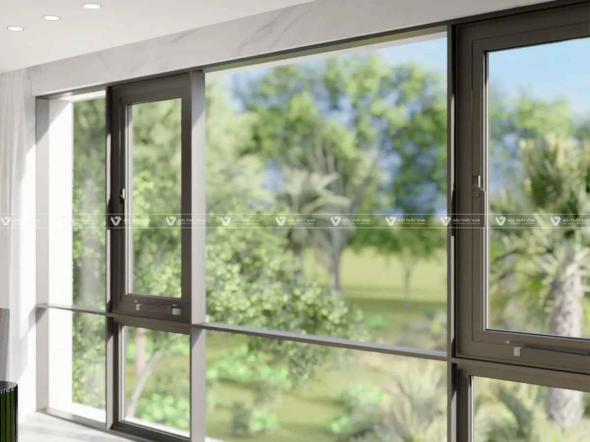 Đóng và mở cửa sổ dễ dàng, không ảnh hưởng đến xung quanh. Hệ thống cửa đảm bảo di chuyển nhẹ nhàng, trơn tru. Có đa dạng loại kính khác nhau từ kính dán an toàn đến kính cường lực, kính hộp.