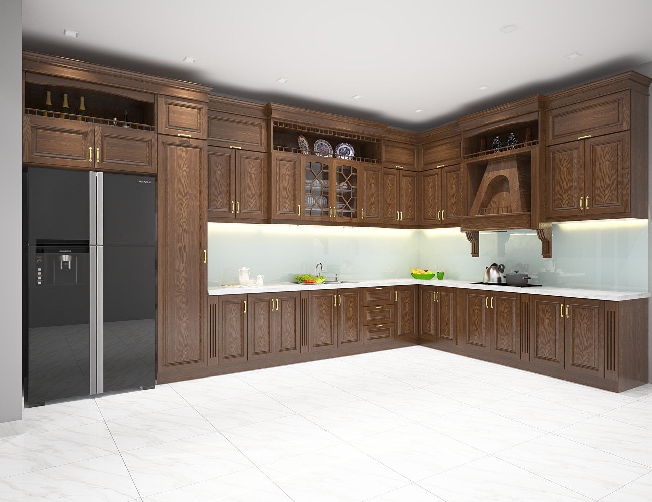 2.3 Tủ bếp gỗ óc chó chữ L