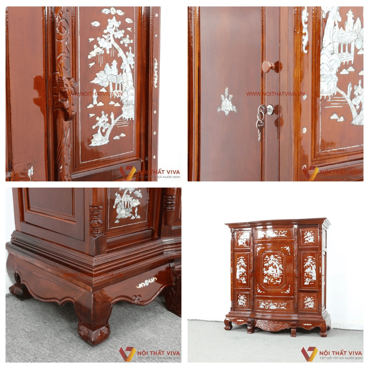 4.1. Tủ Thờ Cẩn Ốc Xà Cừ Gỗ Căm Xe Bụng Phệ BT-1706