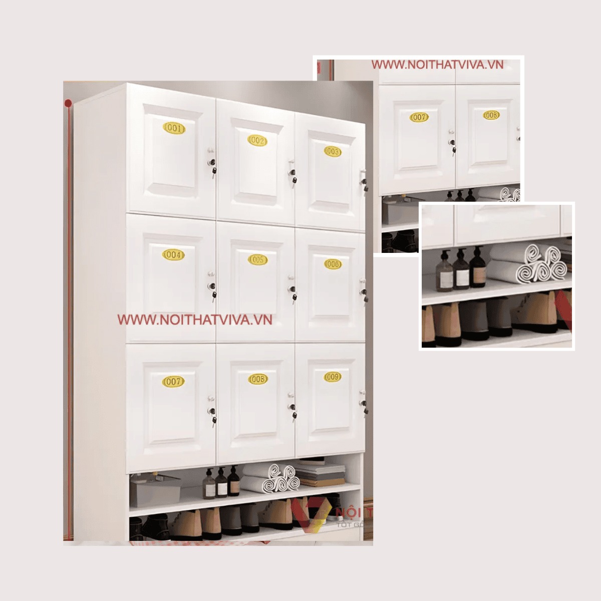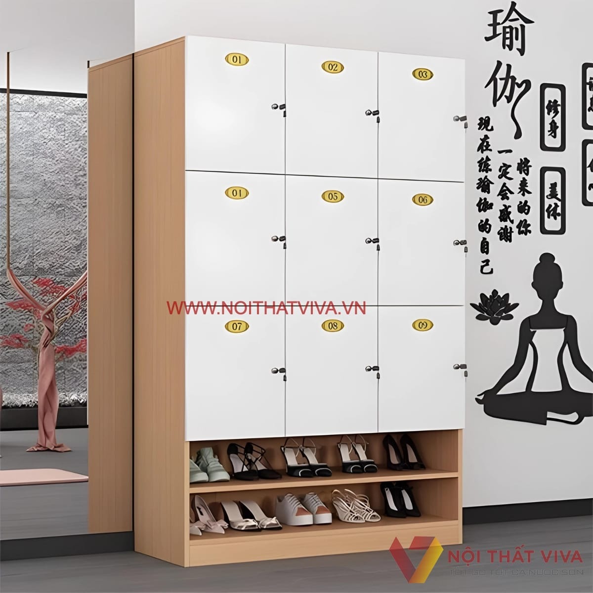 3.2. Tủ Locker 9 Ngăn Tích Hợp Kệ Giày Gỗ Công Nghiệp TL-2829