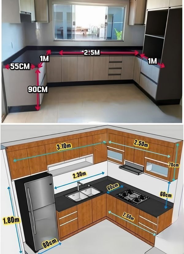 3. Xác định kích thước tủ bếp chữ L cho nhà nhỏ tiêu chuẩn theo mét dài