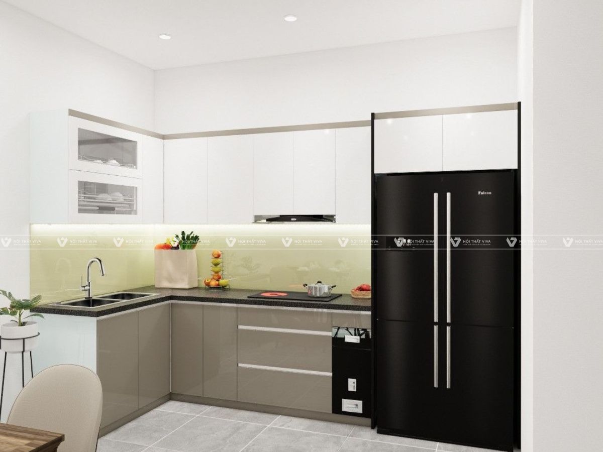 Các mẫu tủ bếp đẹp hình chữ L cần có màu sắc “ăn nhập” với thiết kế nội thất trong trong trong thể căn nhà.