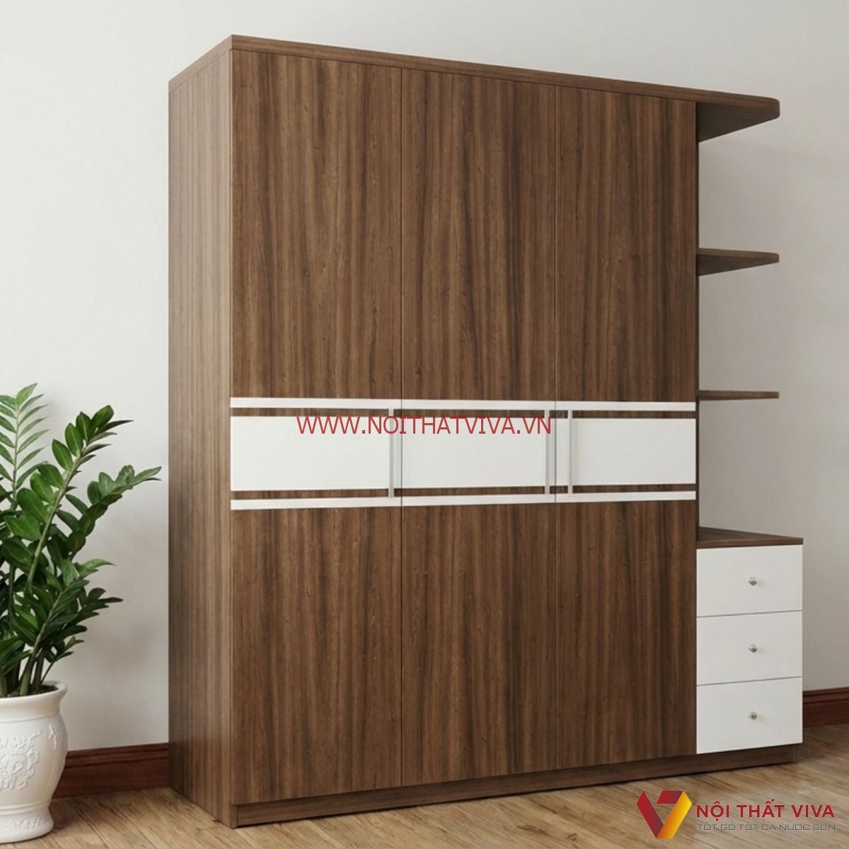 Hiện nay, các mẫu Tủ quần áo gỗ công nghiệp ngày càng được nhiều lựa chọn cho nội thất phòng ngủ bởi sở hữu rất nhiều những ưu điểm riêng như giá thành, chất lượng tốt dễ thi công thiết kế, màu sắc bắt mắt. Để giải thích cho xu hướng này, mời bạn cùng Nội Thất Viva xem chi tiết mẫu Tủ Quần Áo Góc Tường sau đây!